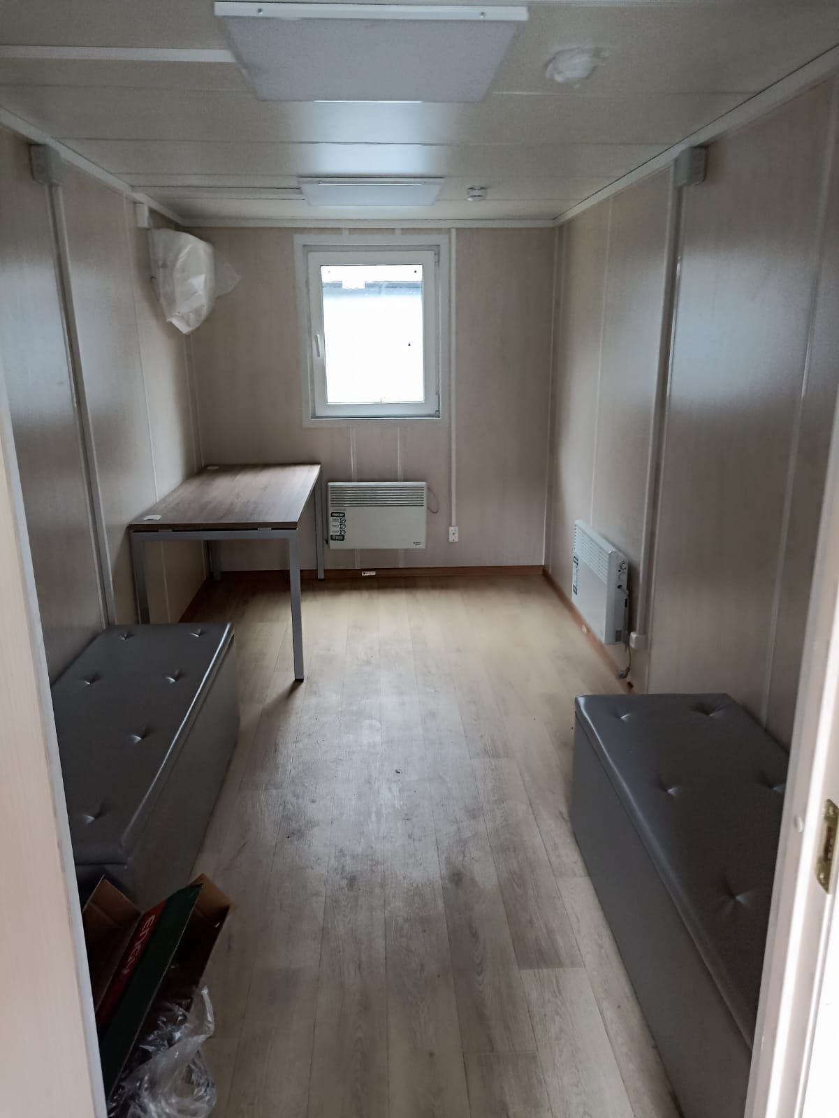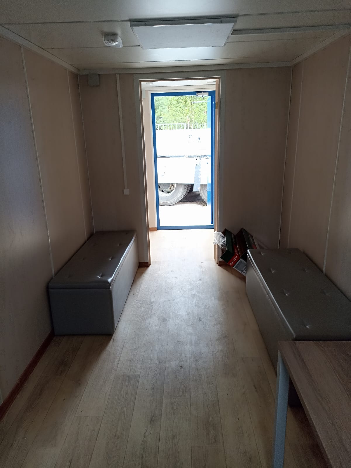 - внутренняя отделка стен, потолка – ЛДСП, омега-профили белого цвета,